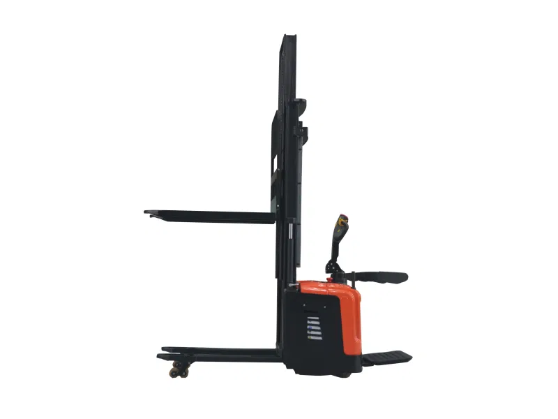 Staflarinn er nettur með minni beygjuradíus. Rafdrifið aksturskerfi, rafstýri, lóðrétt lækkun, staflarinn er auðveldur í meðförum og framúrskarandi afköst. Stöðluð stilling á neyðarstöðvunarrofa og neyðarbakkbúnaði.